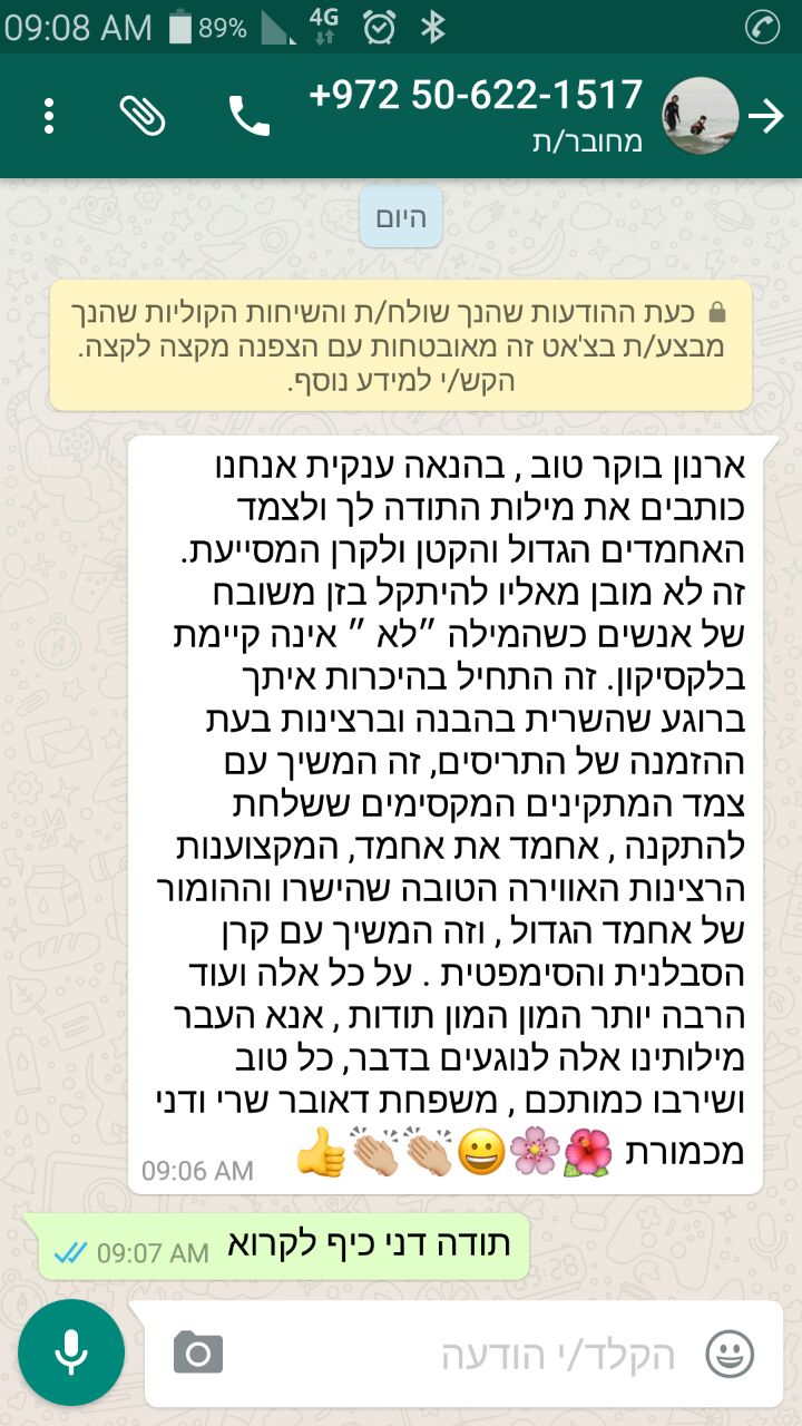 קבלנו מספר הצעות מחיר מכמה ספקים שונים. לאחר פגישה עם מר ארנון ברק (מנהל השירות) מידית הבנתי שיש לי עסק עם מקצוען.