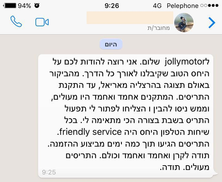 ברצוני להביע את תודתי על העבודה המקצועית והשירות שקבלתי מצוות ״גולי מוטור״.