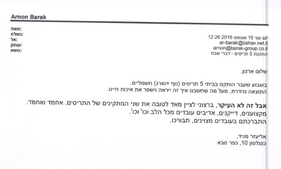 מר ארנון ברק - שתמיד זמין לכל שאלה, גם כאשר התעוררו בעיות (שזה מקובל בפרוייקטים מסובכים) ארנון לא עזב אותנו לרגע ואף הגיע באופן אישי לפקח על כלל העבודות. זה לא מובן מאליו !