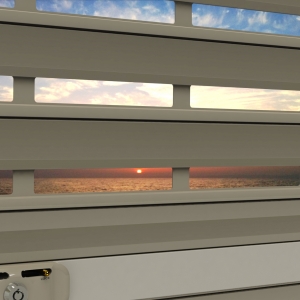23 מ"מ גובה הניקוב בשלב האור פיתוח חדשני ובלעדי. מהיום אתם יכולים להינות מתריס נוף בעל פתחי אור ואוויר רחבים במיוחד המאפשרים פתיחה של כשליש משטח התריס. תריס נוף מזמין רצועת אור ונוף לתוך הבית. תריס נוף מביא את החידושים הבאים: